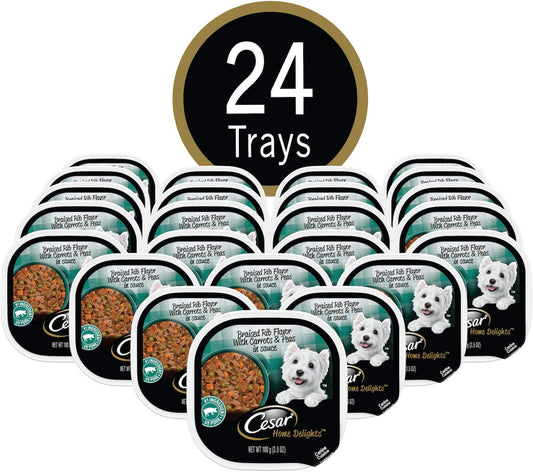 Home Delights Adult Soft Wet Dog Food Braised Rib Flavor with Carrots & Peas in Sauce, 3.5 Oz. Easy Peel Trays, Pack of 24